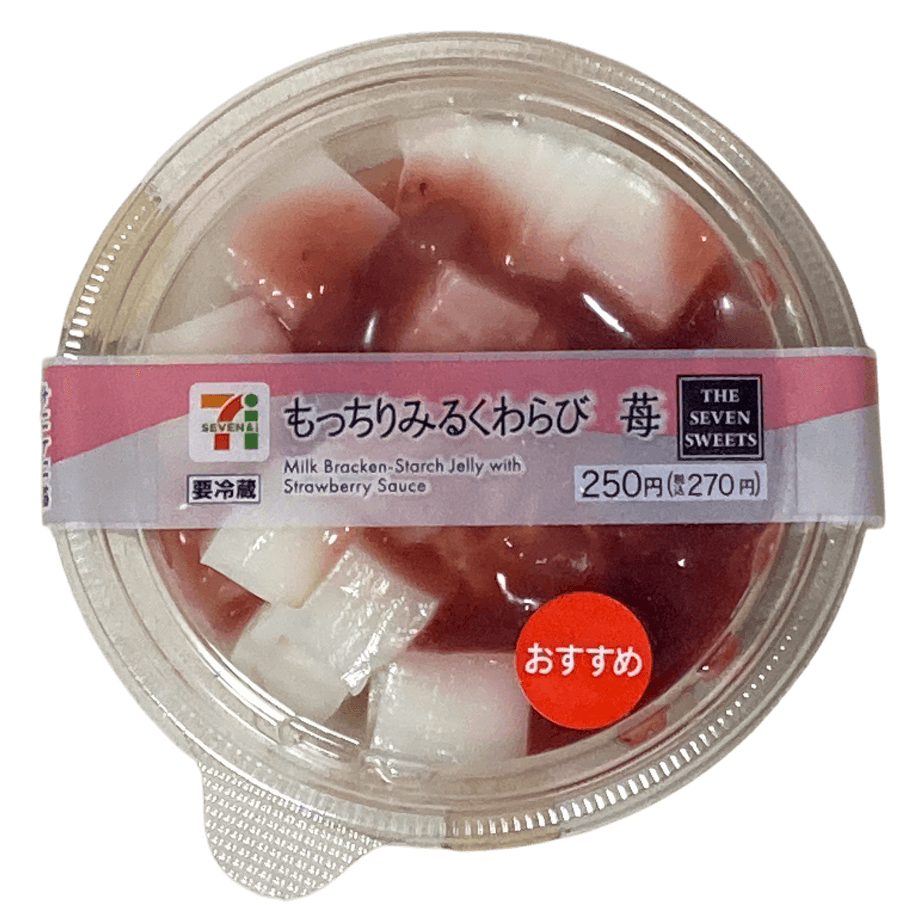 もちっとしたミルクわらびもちにいちごソースがかかった爽やかなスイーツでした。さっぱり食べられて、暑い夏でも美味しく食べられます。ぜひセブンイレブンで探してみてください。