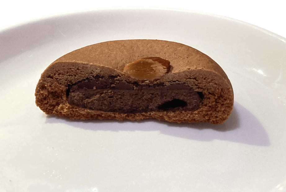 袋を開けるとシナモンの良い香りがしてきます。割ってみると、クッキーの中にはチョコレートが入っています。