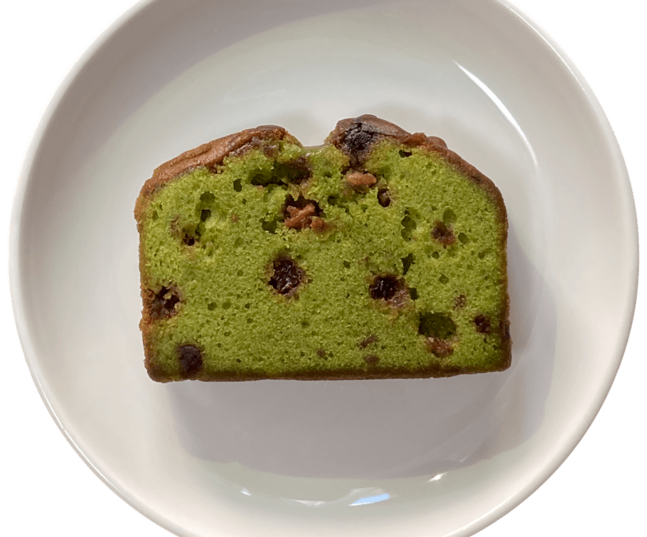 ピスタチオのパウンドケーキに、フリーズドライのいちごが入っていて甘酸っぱい味でさっぱり食べられます。