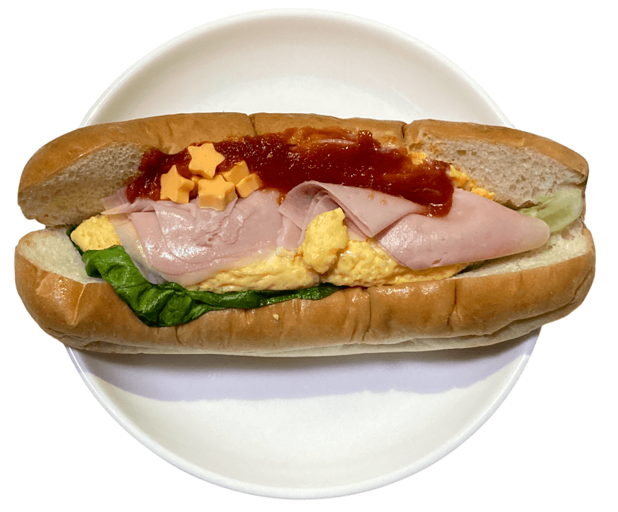 具材のたまごやハムがボリュームたっぷりで満足感があるサンドイッチです。また、星型のチーズが可愛くて美味しいです。