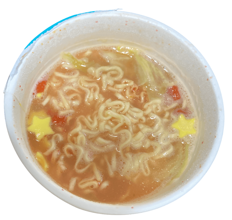 クリーミートマト味なので、トマトクリームのパスタのソースのような味わいです。しかし、クリーミーながらもあっさりしていて、ヌードルとの相性も良いです。カービィらしく星も入っていて見た目も可愛いです。