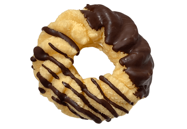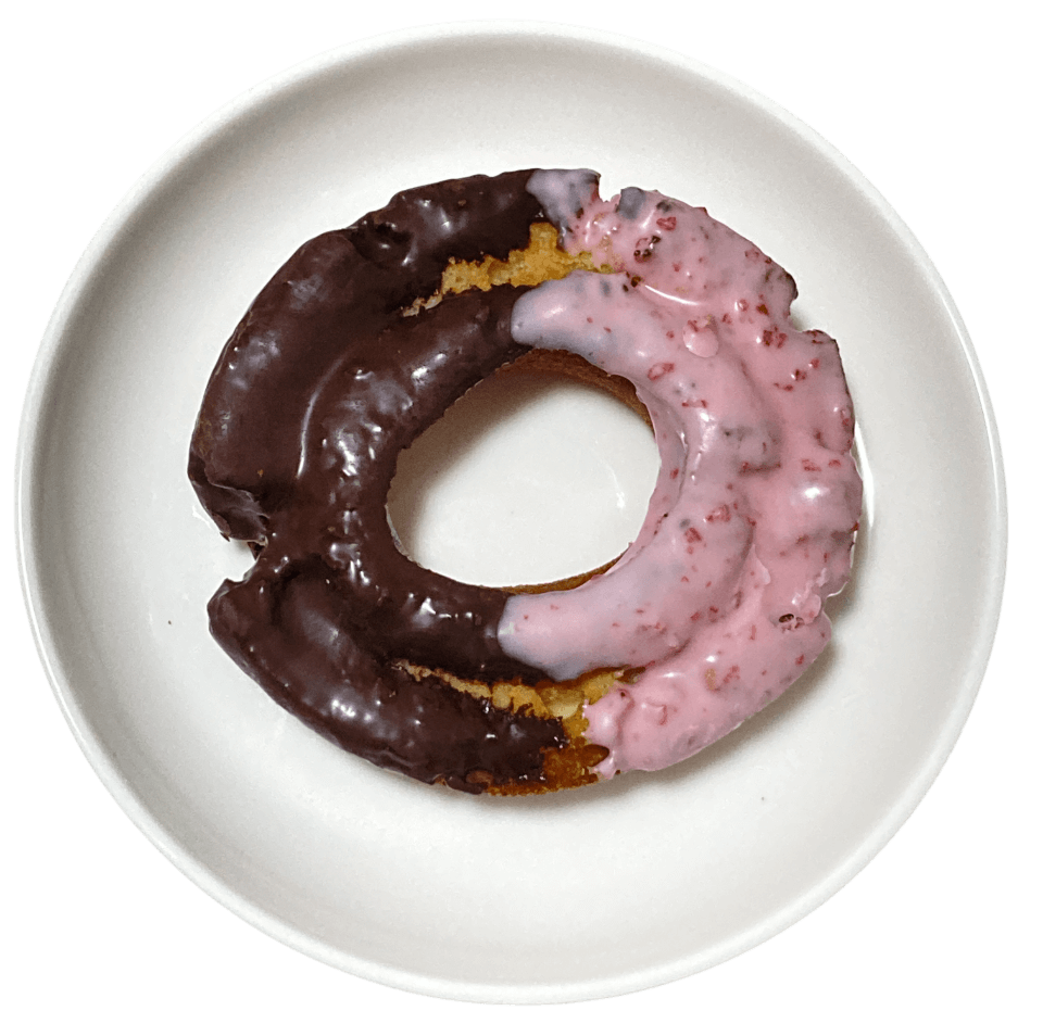 オールドファッションにストロベリーチョコとチョコレートがコーティングされたドーナツです。店舗販売のオールドファッションにはストロベリーチョコがかかったものはないので、ネットオーダー限定の味わいです。全体にチョコレートがかかっているので、オールドファッションとストロベリーチョコ、チョコレート両方をたっぷり味わえる一品です。