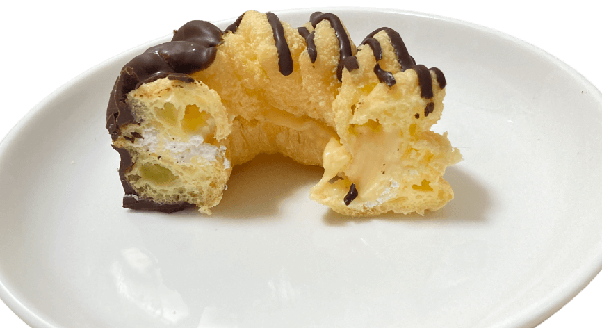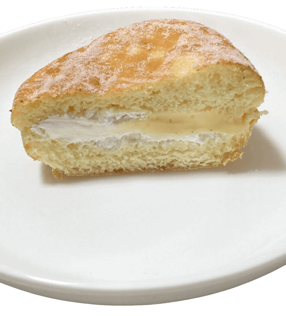 カスタードクリームとホイップクリームが両方入ったドーナツです。店舗販売のものは、カスタードクリームかホイップクリームどちらかなので、1つのドーナツで両方味わえるお得な一品です。