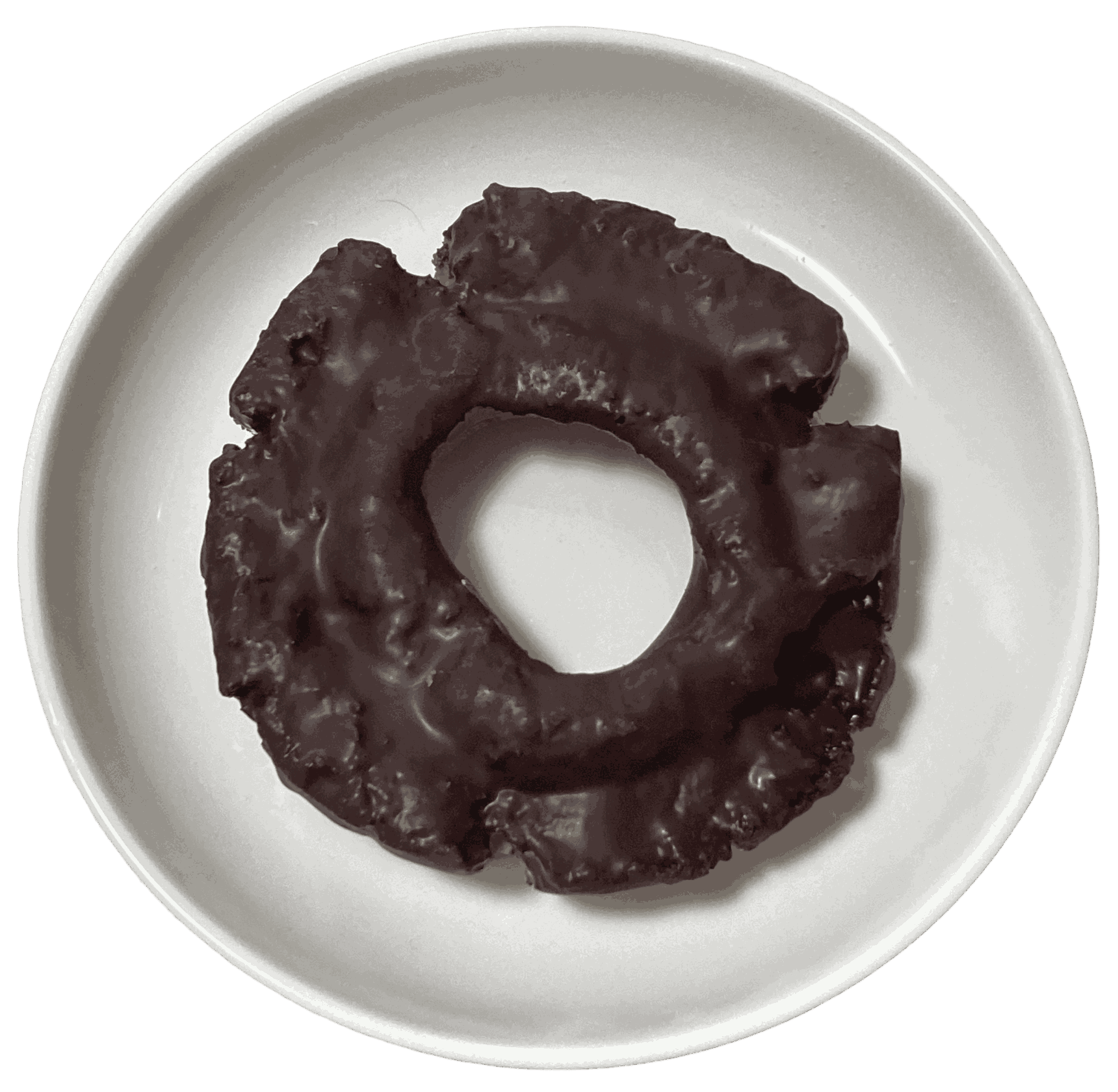 たっぷり全体にチョコレートがコーティングされたオールドファッションです。店舗販売のものは、全体にチョコレートがコーティングされていないので、チョコレートとオールドファッションの組み合わせをたっぷり味わえます。