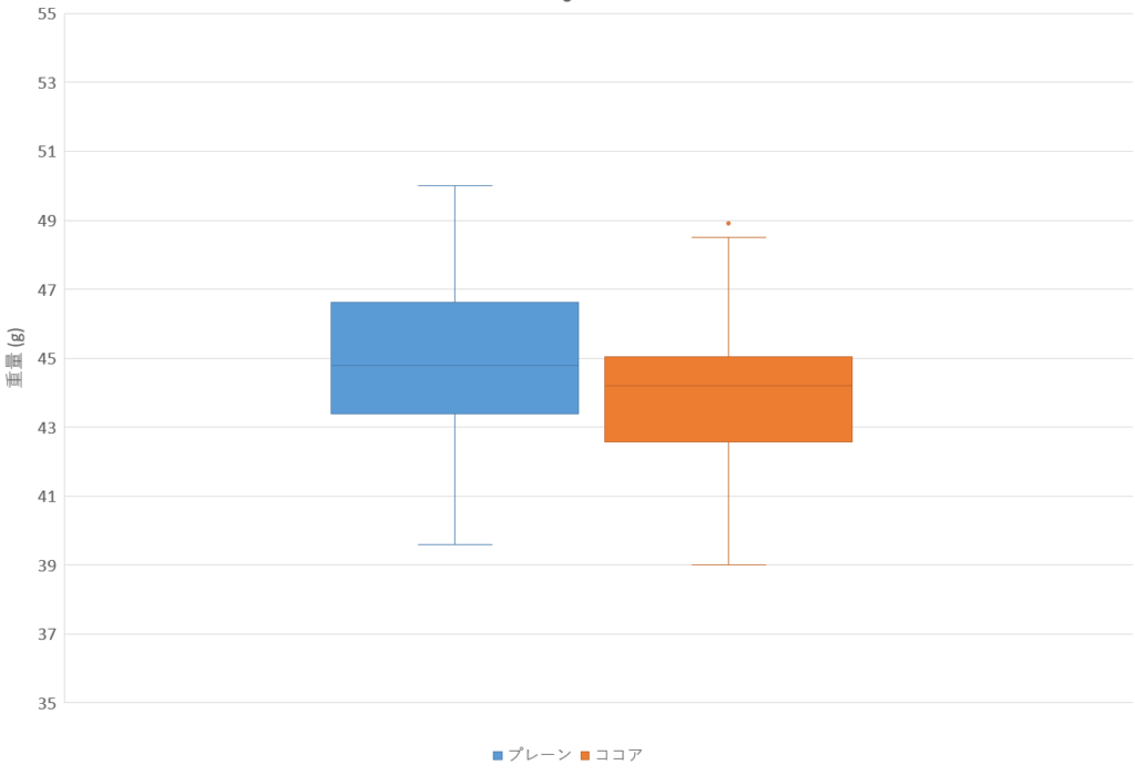 表1.ヤマザキ ケーキドーナツのプレーンおよびココアの重量測定結果(n = 50)